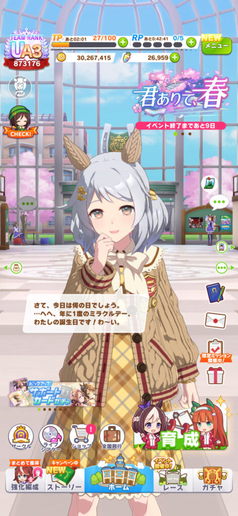 とっても性癖がわかりやすいチーム、この間ビワハヤヒデがすり抜けで来たので魔改造してダート走ってもらいます。